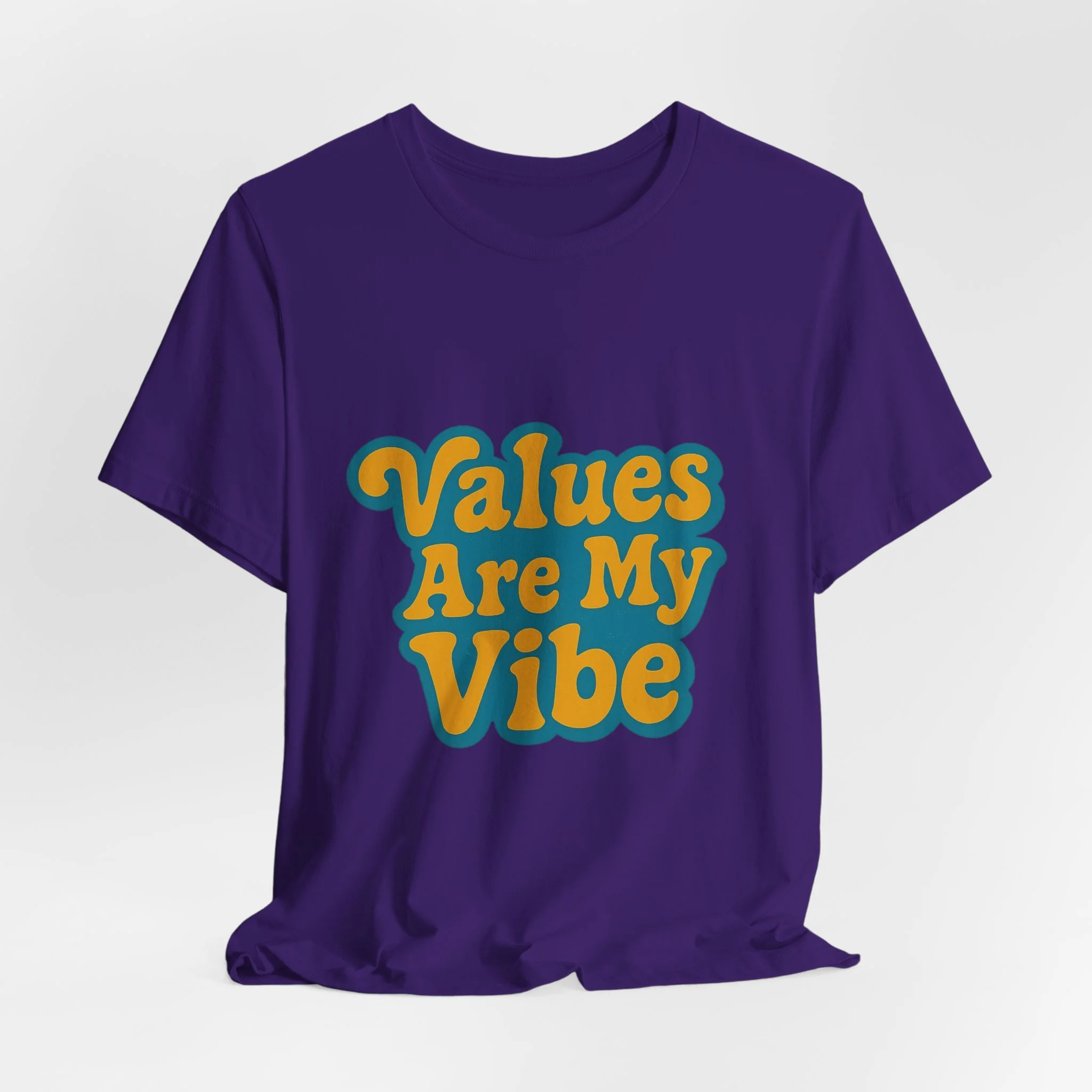 This lightweight tee speaks softly but confidently. A soft, breathable cotton jersey carries a bold, retro-inspired chest print that reads “Values Are My Vibe,” letting wearers share a values-forward message without shouting. The crew neck and retail fit keep the silhouette tidy and easy to layer, while side seams and shoulder tape hold its shape through repeated wear. It’s the kind of shirt you reach for when you want to look put-together but genuine—morning coffee, casual meetings, community events, or relaxed weekends. The cheerful, rounded lettering adds warmth to the message, making it feel like a friendly statement rather than a slogan.